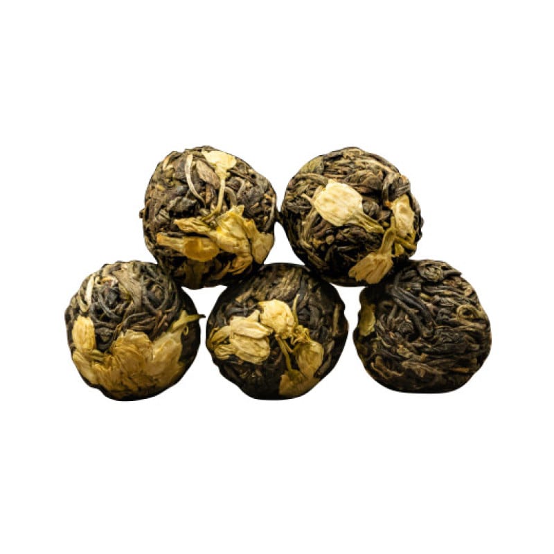 Вишуканий ручний чай з Китаю, сплетений із ніжного зеленого листя та ароматного жасмину. При заварюванні розкривається у красиву квіткову композицію. Має м’який, освіжаючий смак із солодкуватими жасминовими нотами. Чай тонізує, розслабляє та наповнює енергією. Ідеальний для гармонійного чаювання.
